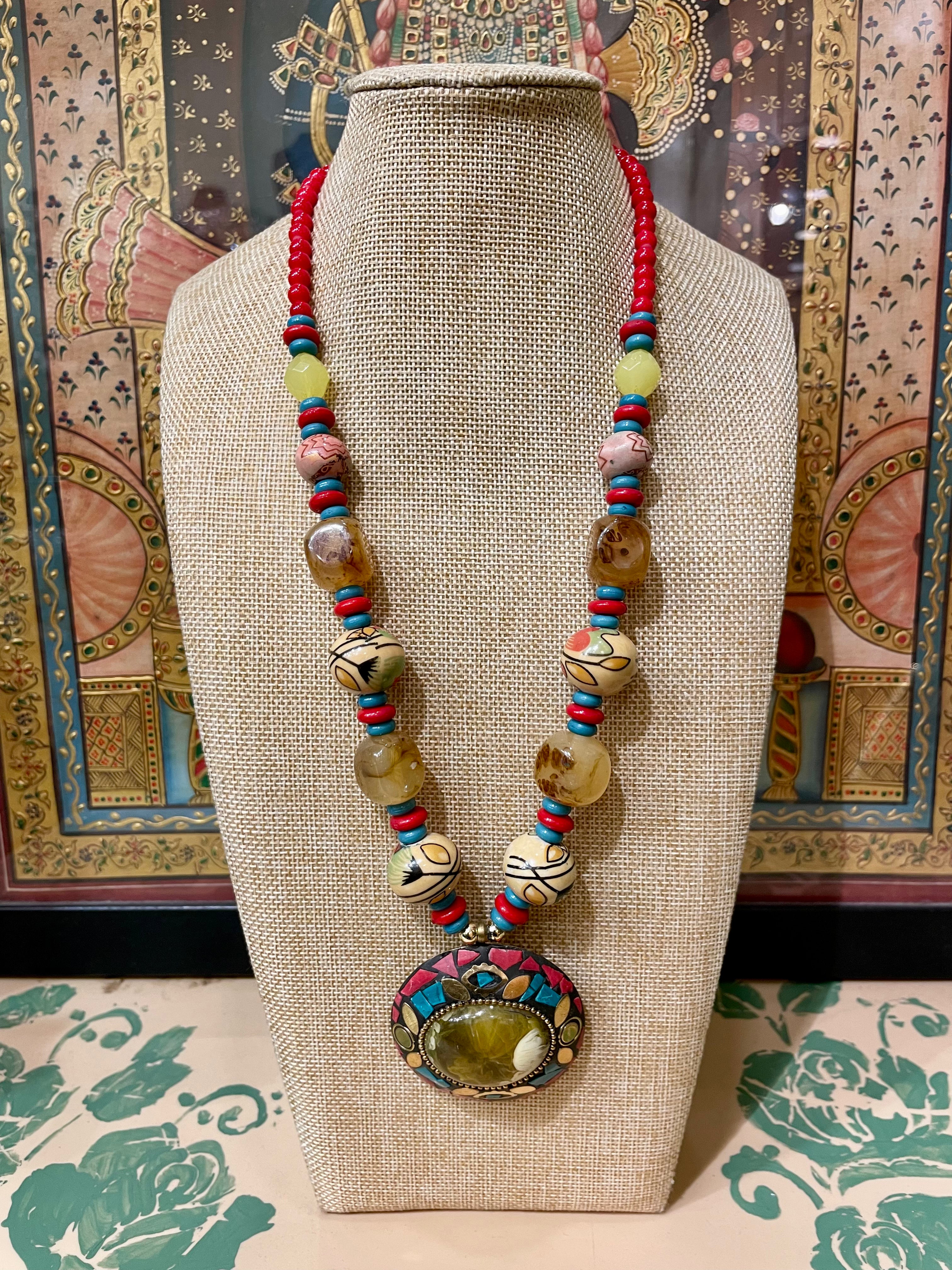 JADE STONE TRIBAL PENDANT NECKLACE