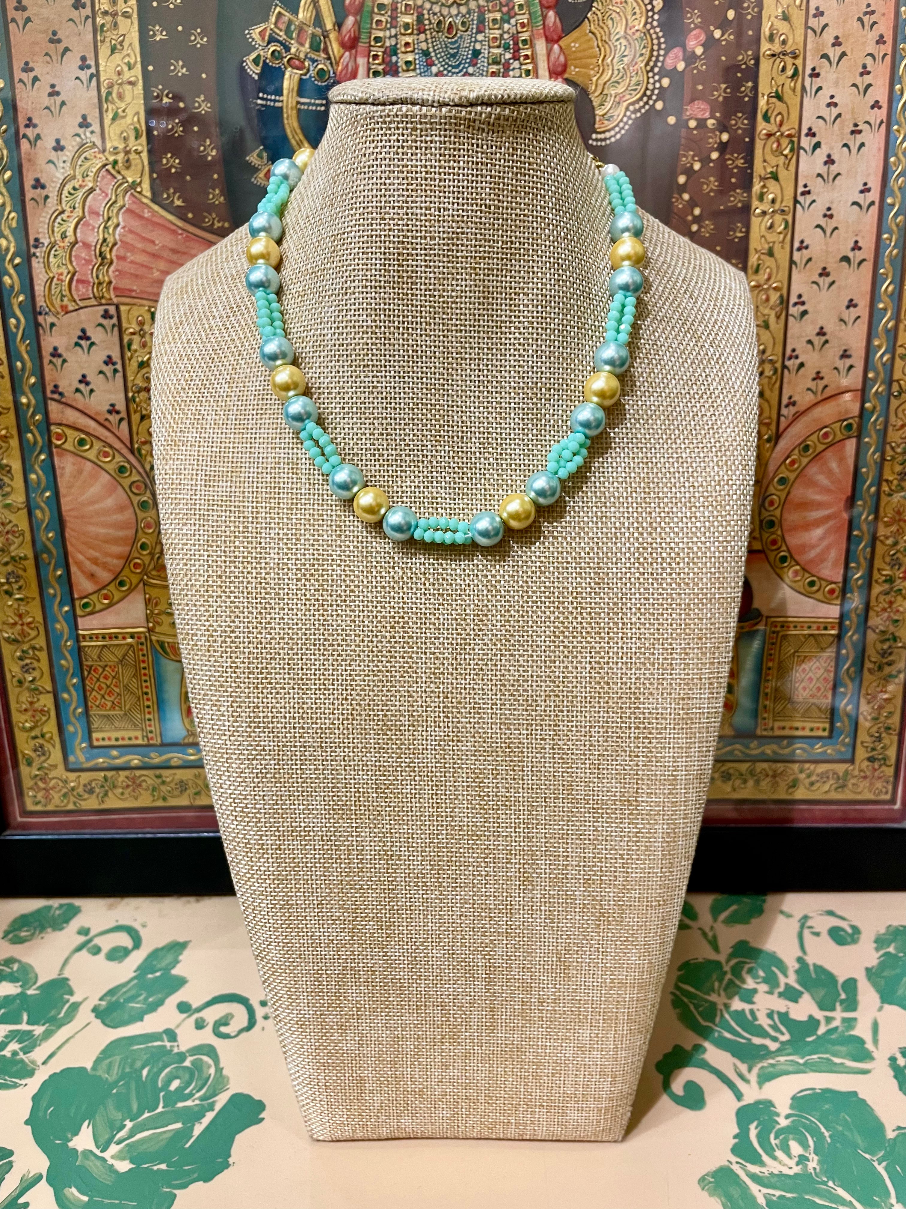 LIGHT GREEN SEMI PRECIOUS ASSORTED STONES STRING NECKLACE