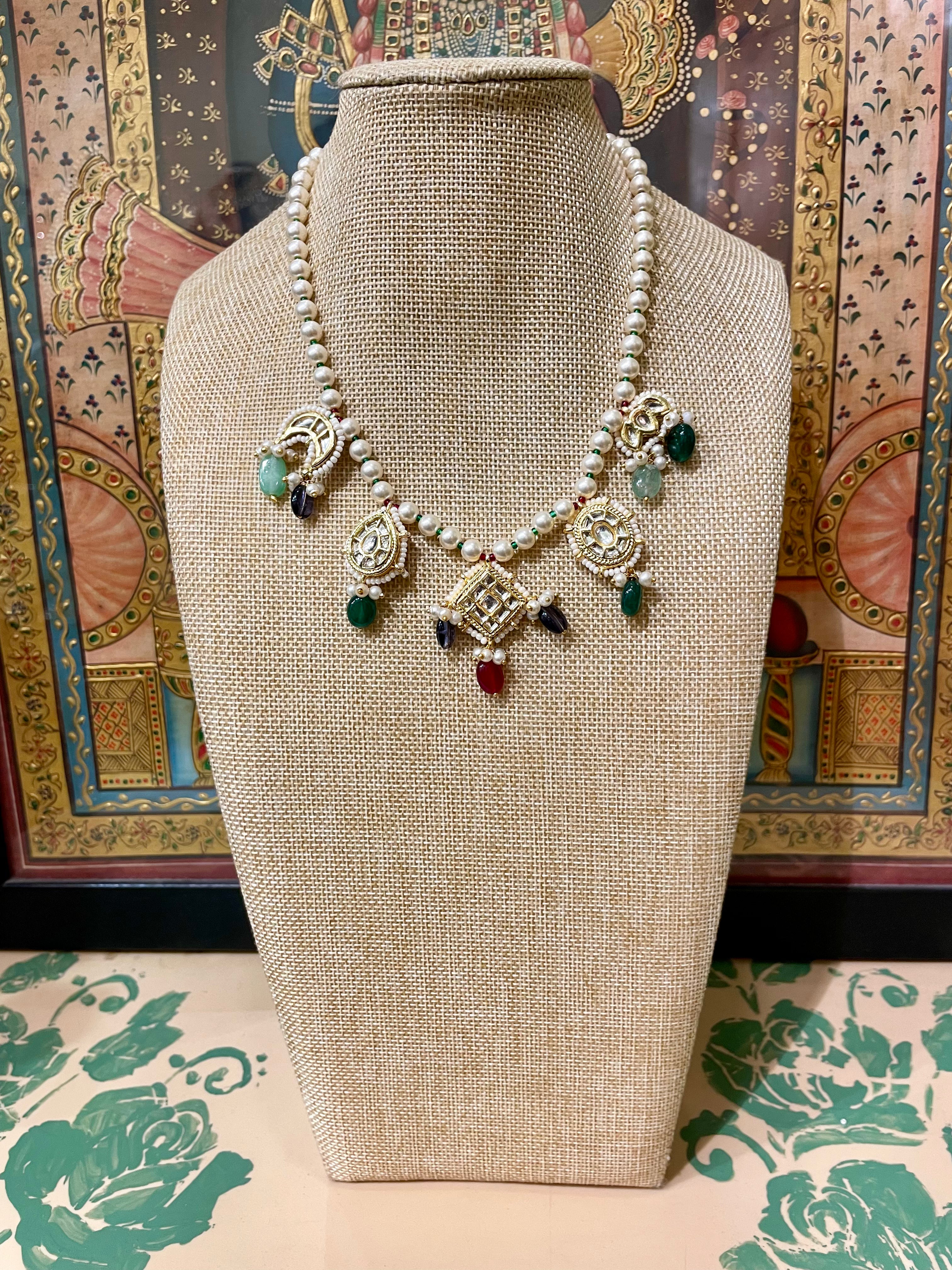MEENA KUNDAN SEMI PRECIOUS STONES PEARL NECKLACE