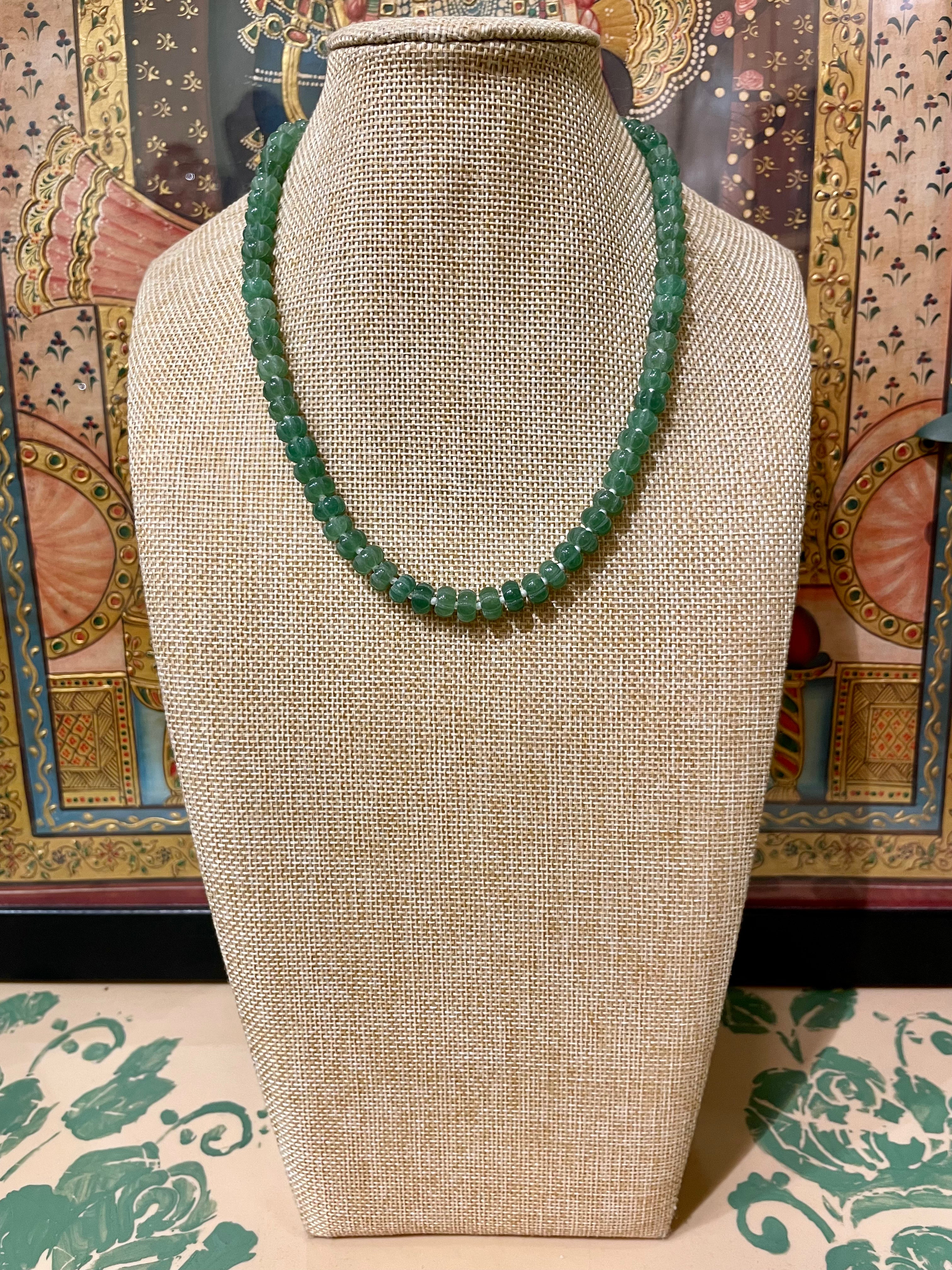 MELON CUT EMERALD SEMI PRECIOUS STONE STRING NECKLACE