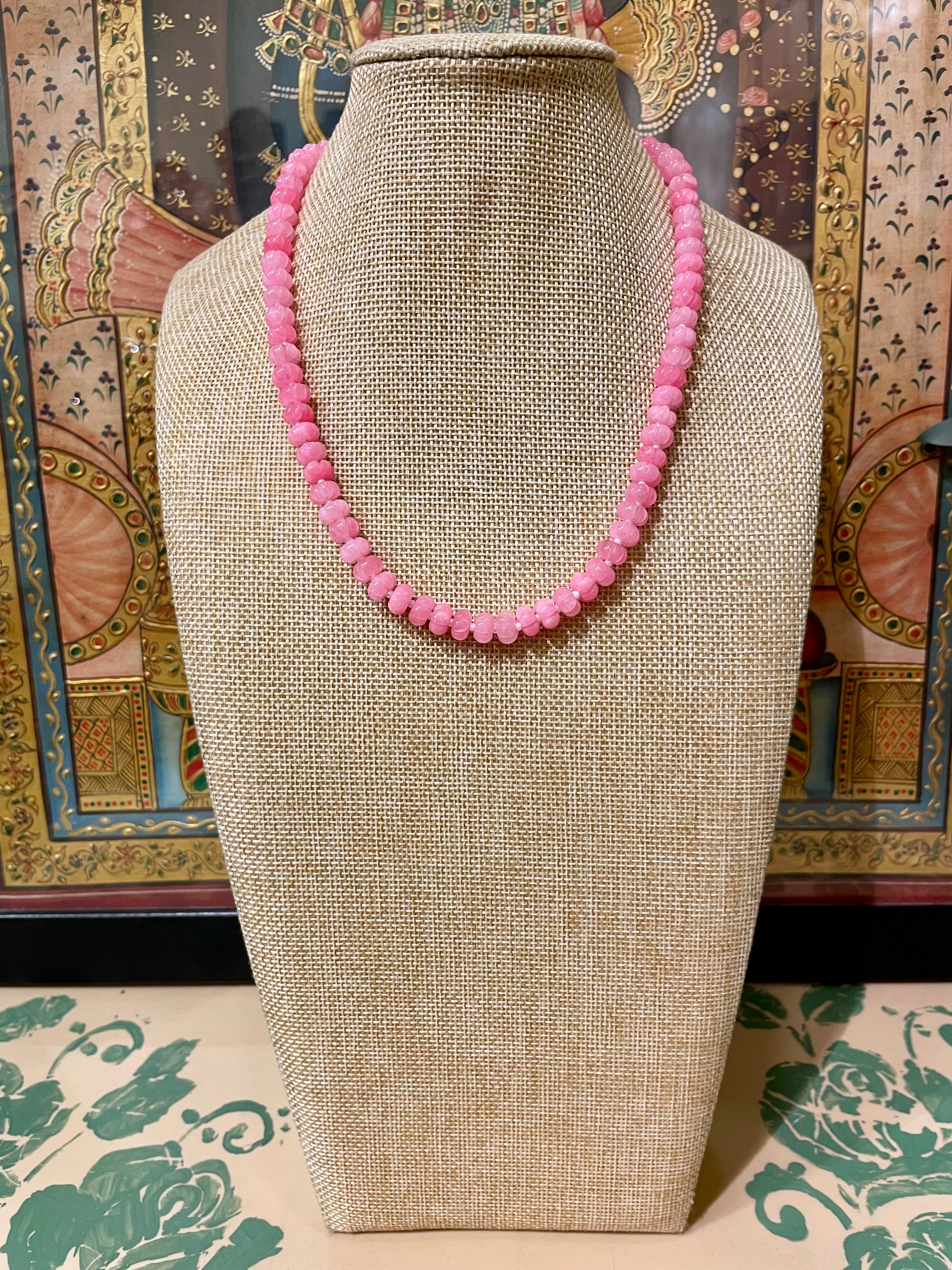 MELON CUT ROSE QUARTZ SEMI PRECIOUS STONE STRING NECKLACE (PINK)