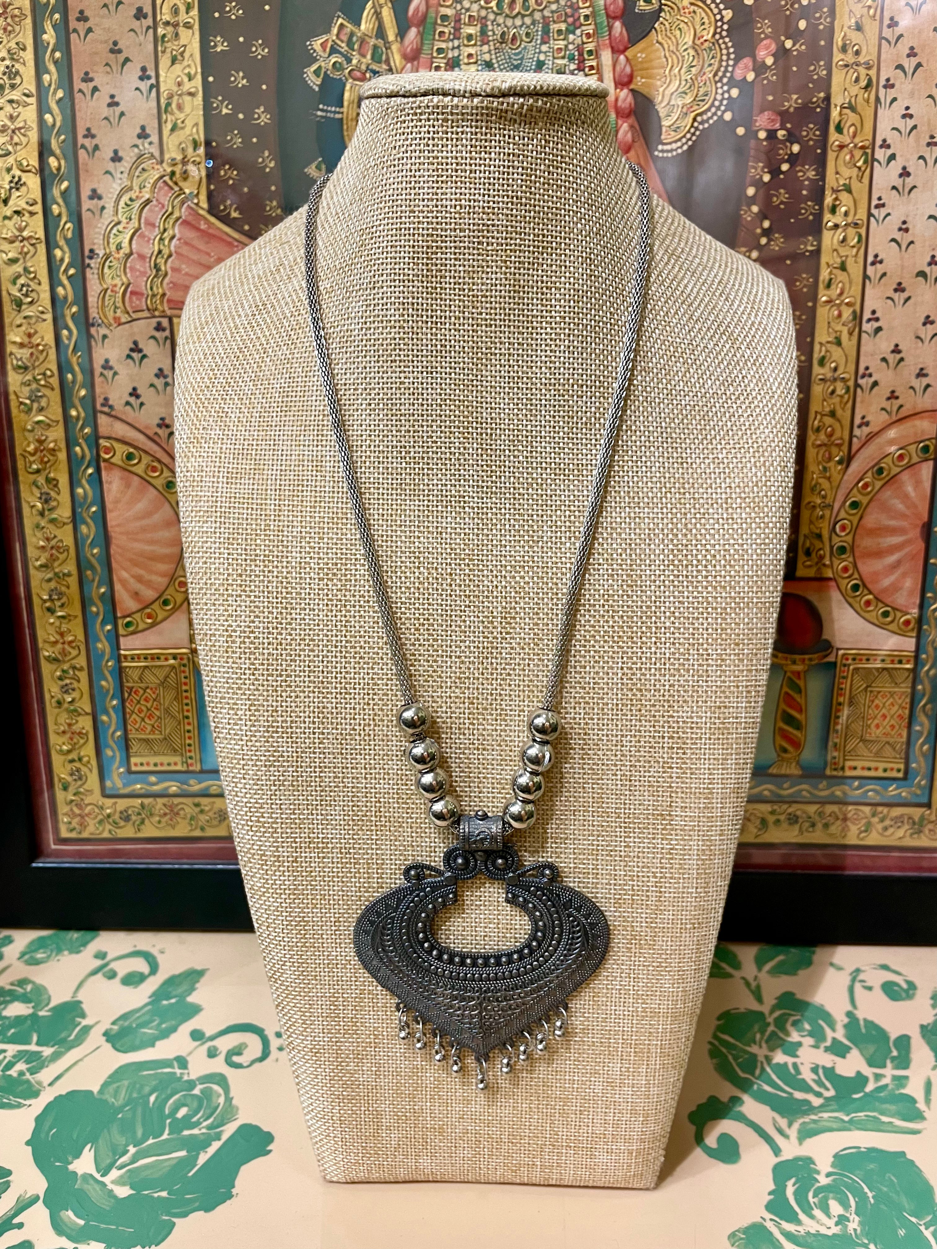 OXIDISED SILVER LONG PENDANT CHAIN DESIGNER NECKLACE