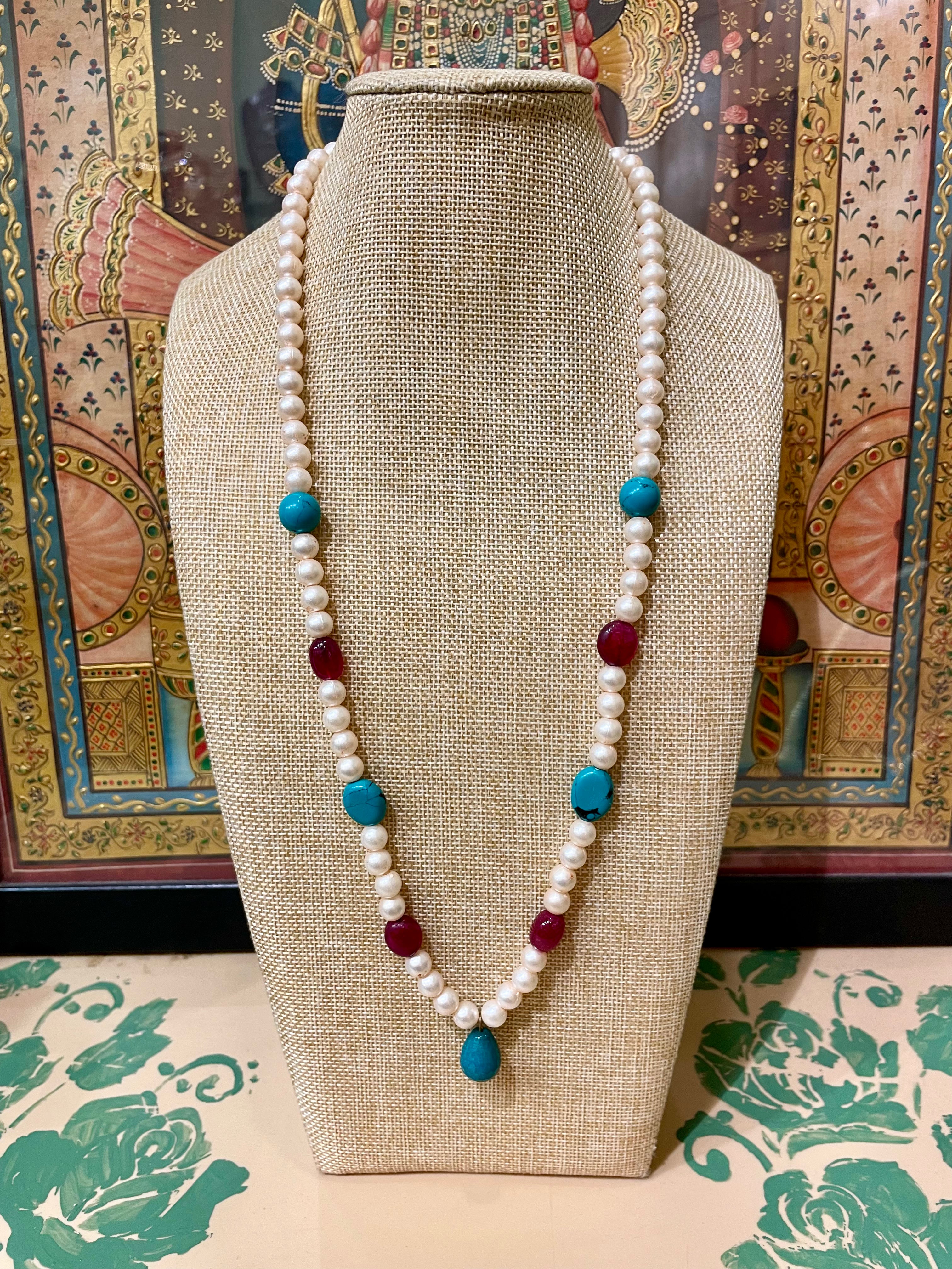 PEARL & TURQUOISE BEADS DESIGNER STRING NECKLACE