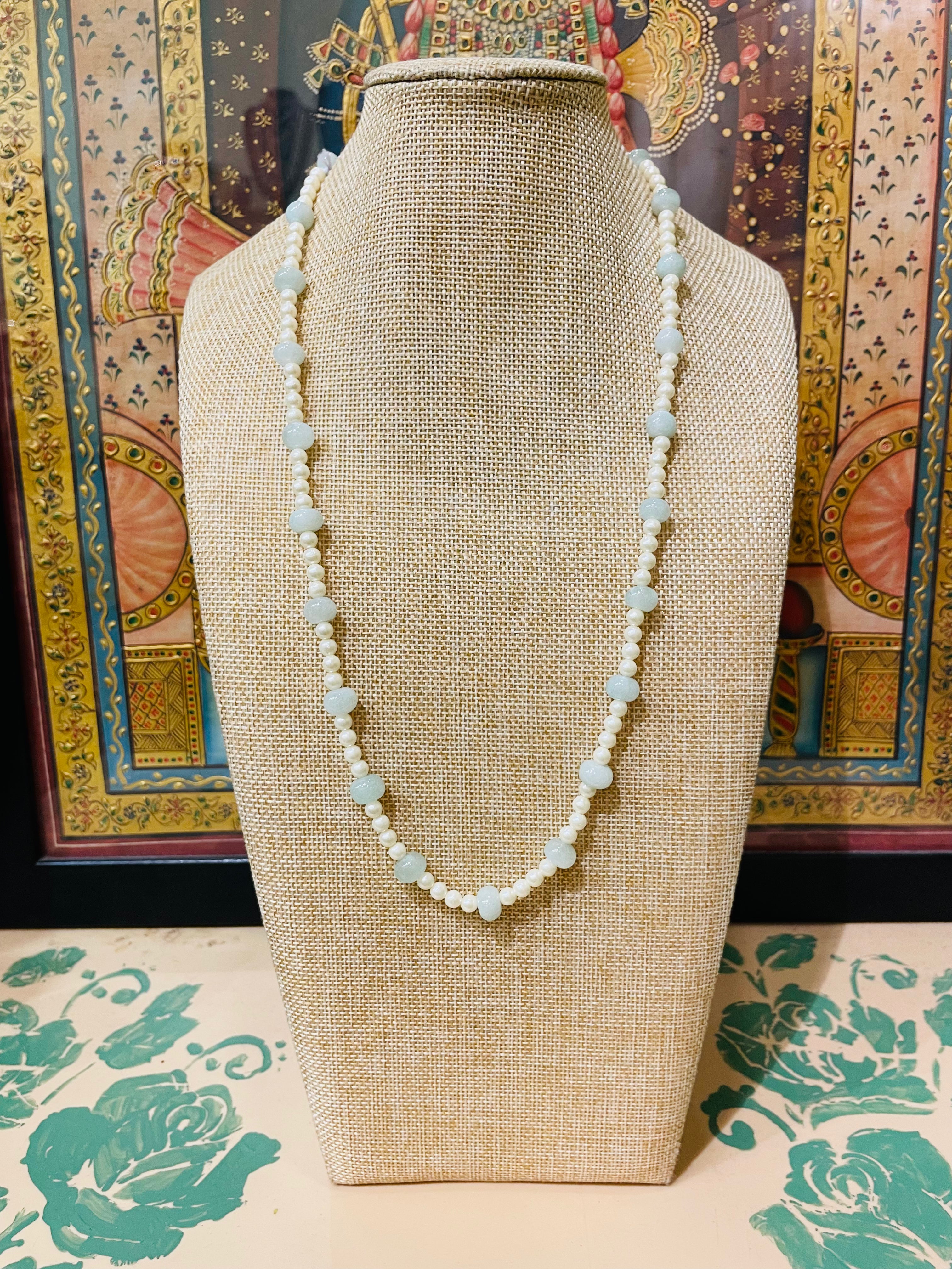 PEARL WITH SKY BLUE SEMI PRECIOUS STRING NECKLACE