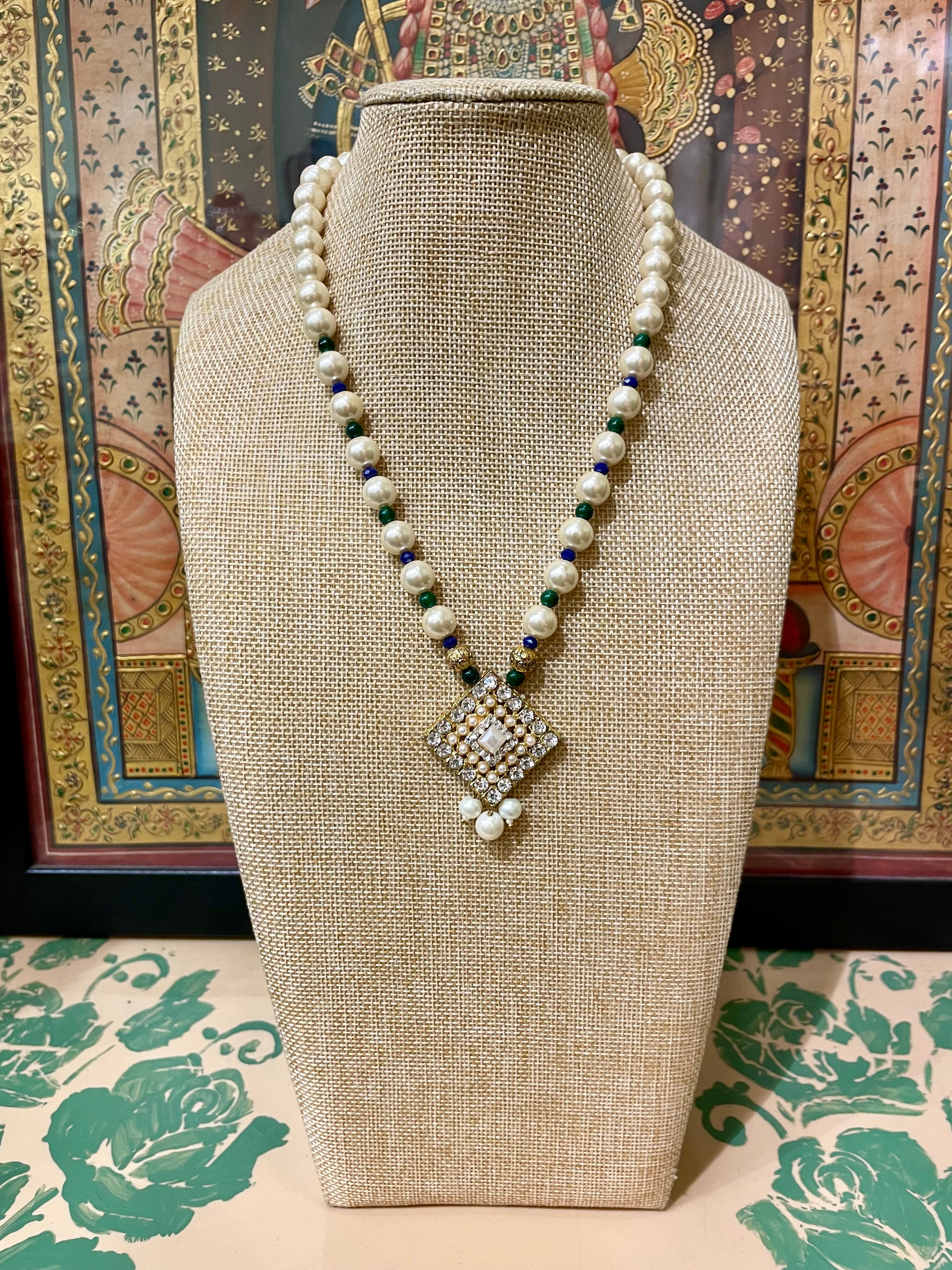 PEARL ZIRCON PENDANT STRING NECKLACE (GREEN)