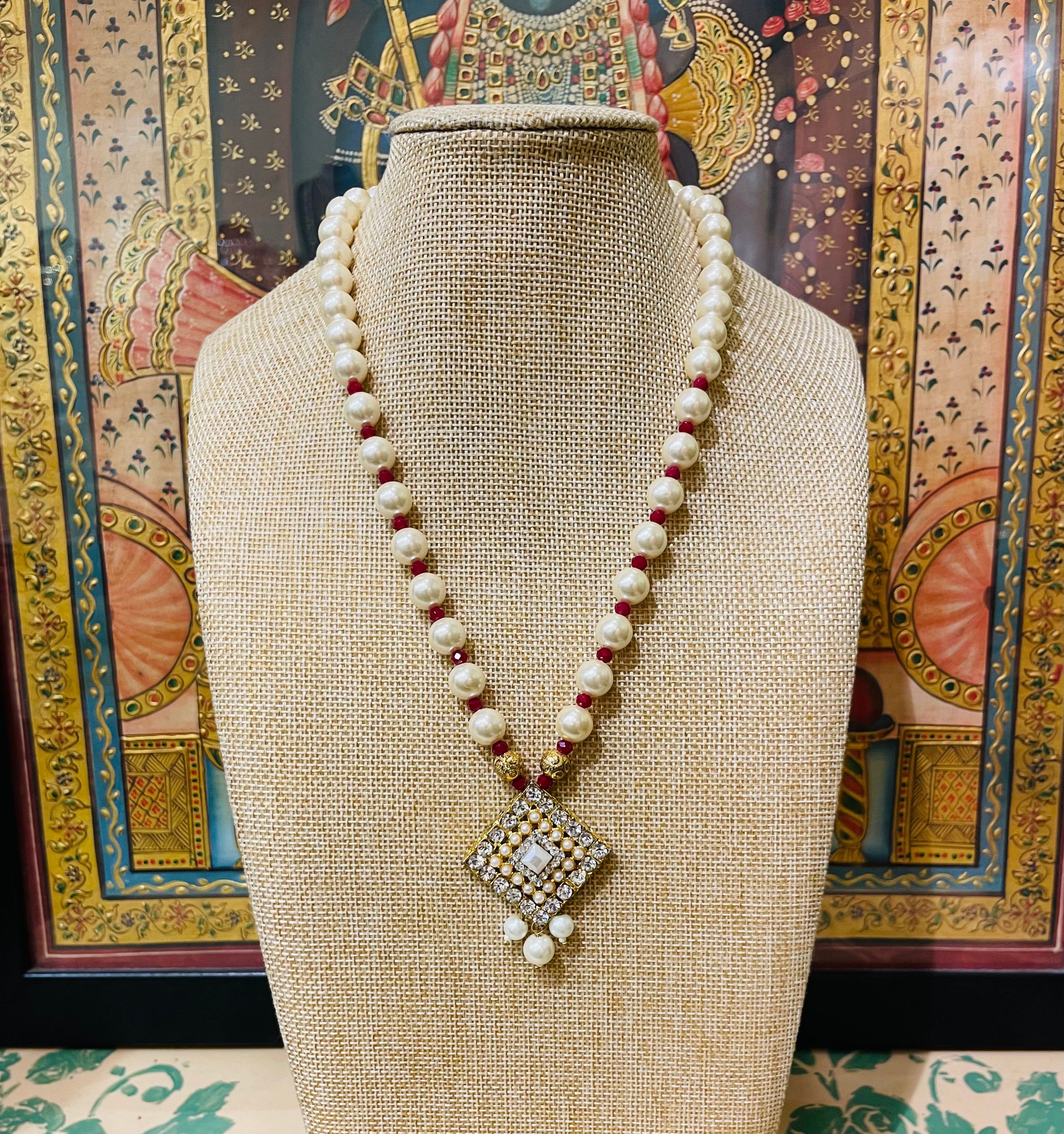 PEARL ZIRCON PENDANT STRING NECKLACE (RED)