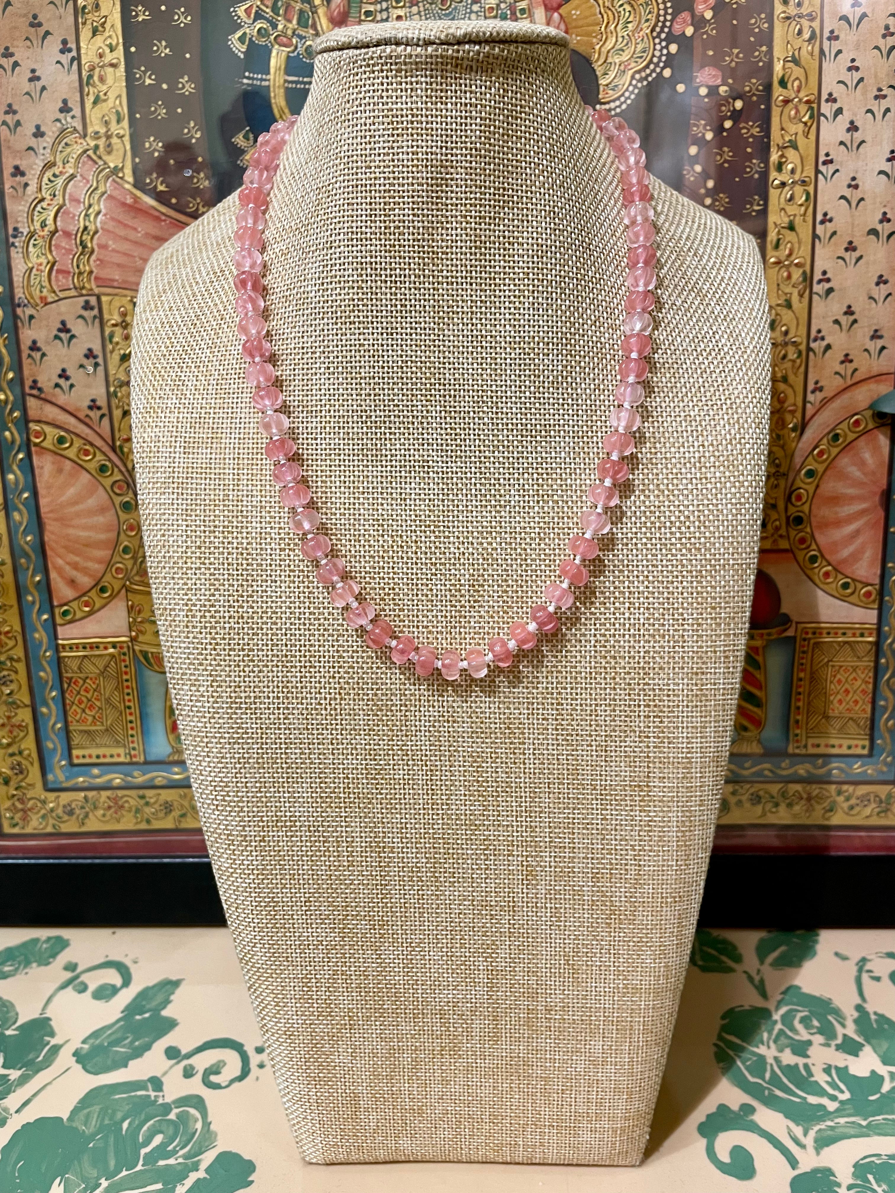MELON CUT ROSE QUARTZ SEMI PRECIOUS STONE STRING NECKLACE