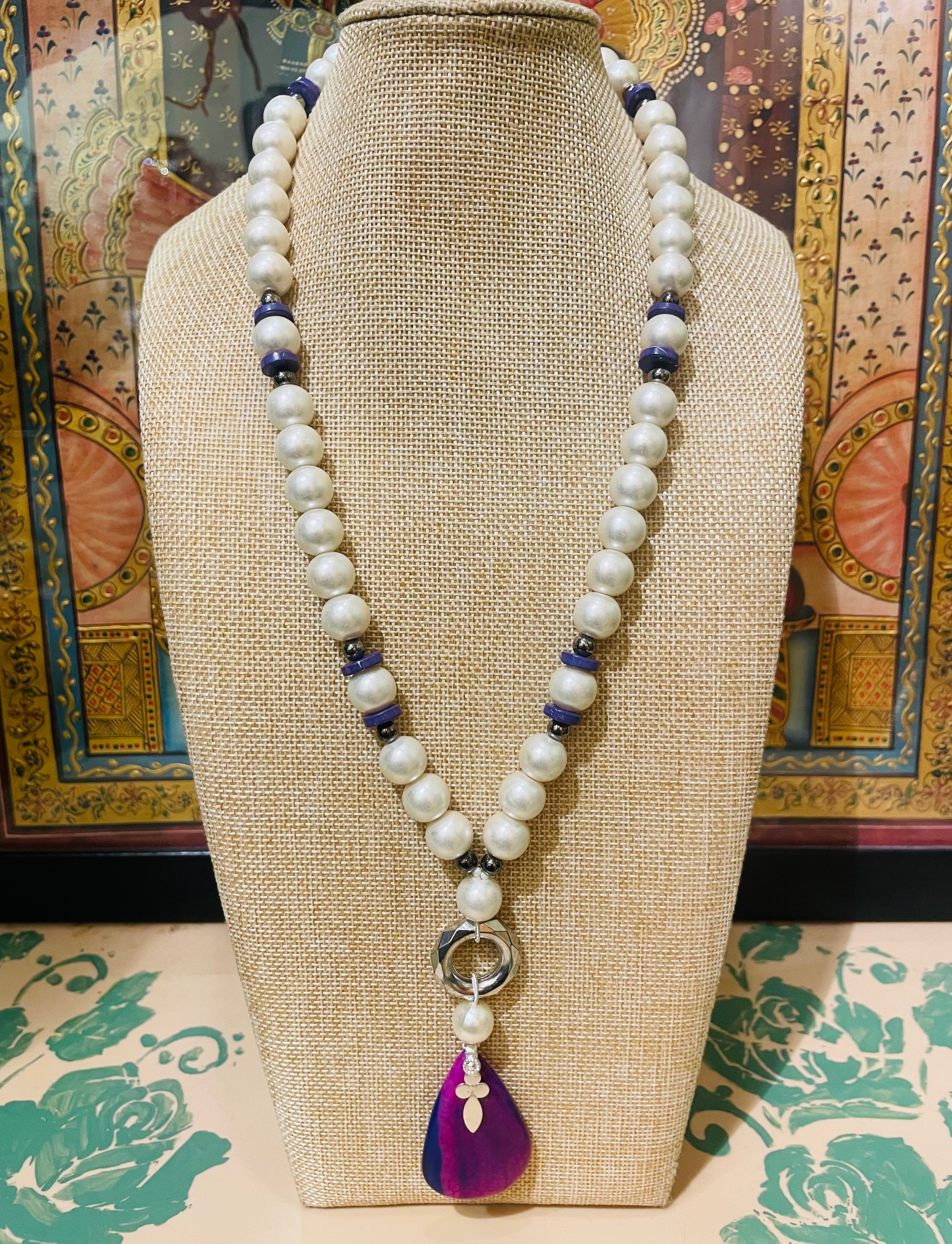PURPLE STONE DESIGNER PEARL STRING NECKLACE