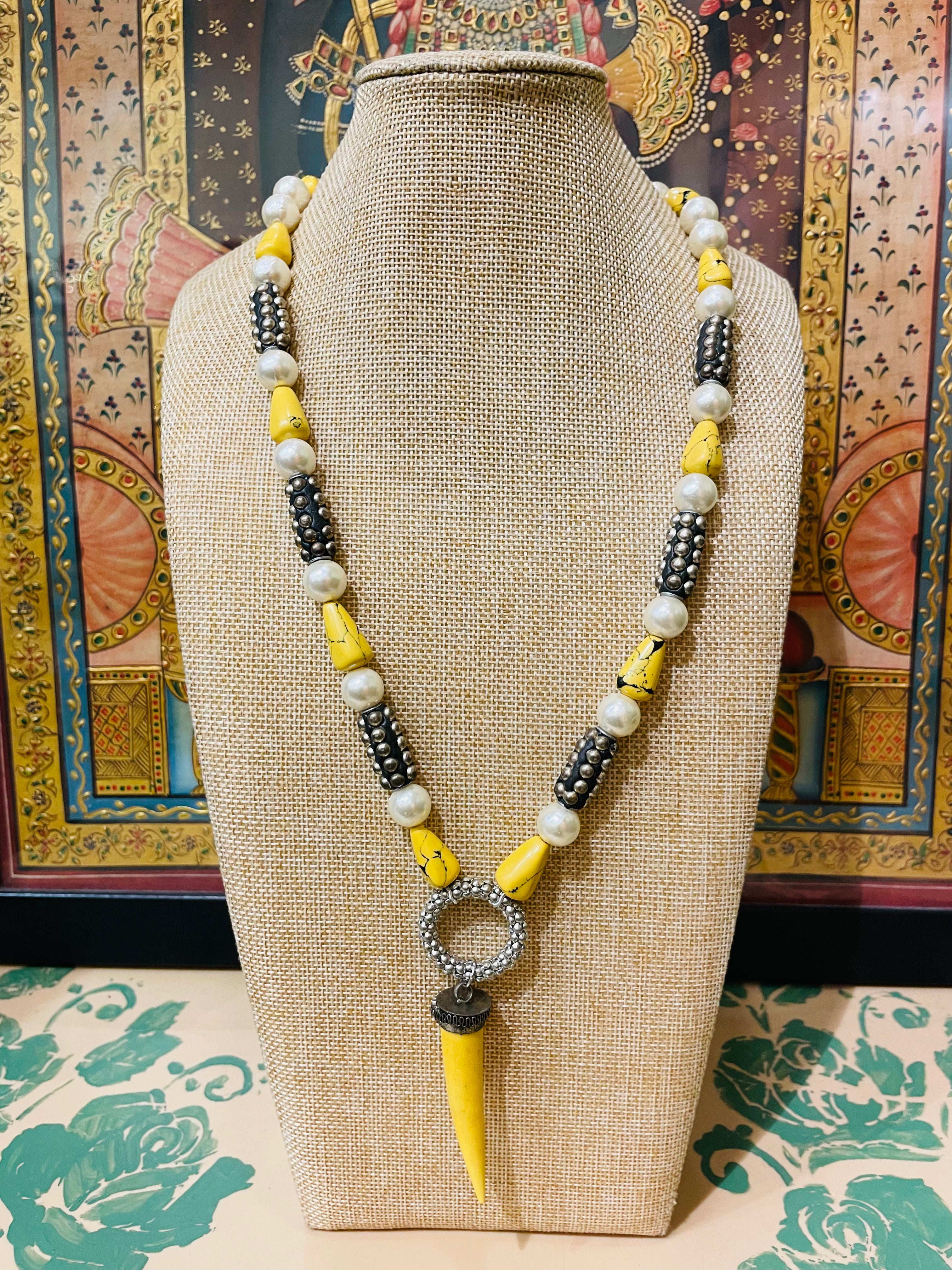 SEMI PRECIOUS MULTI STONES DESIGNER PENDANT NECKLACE (YELLOW)