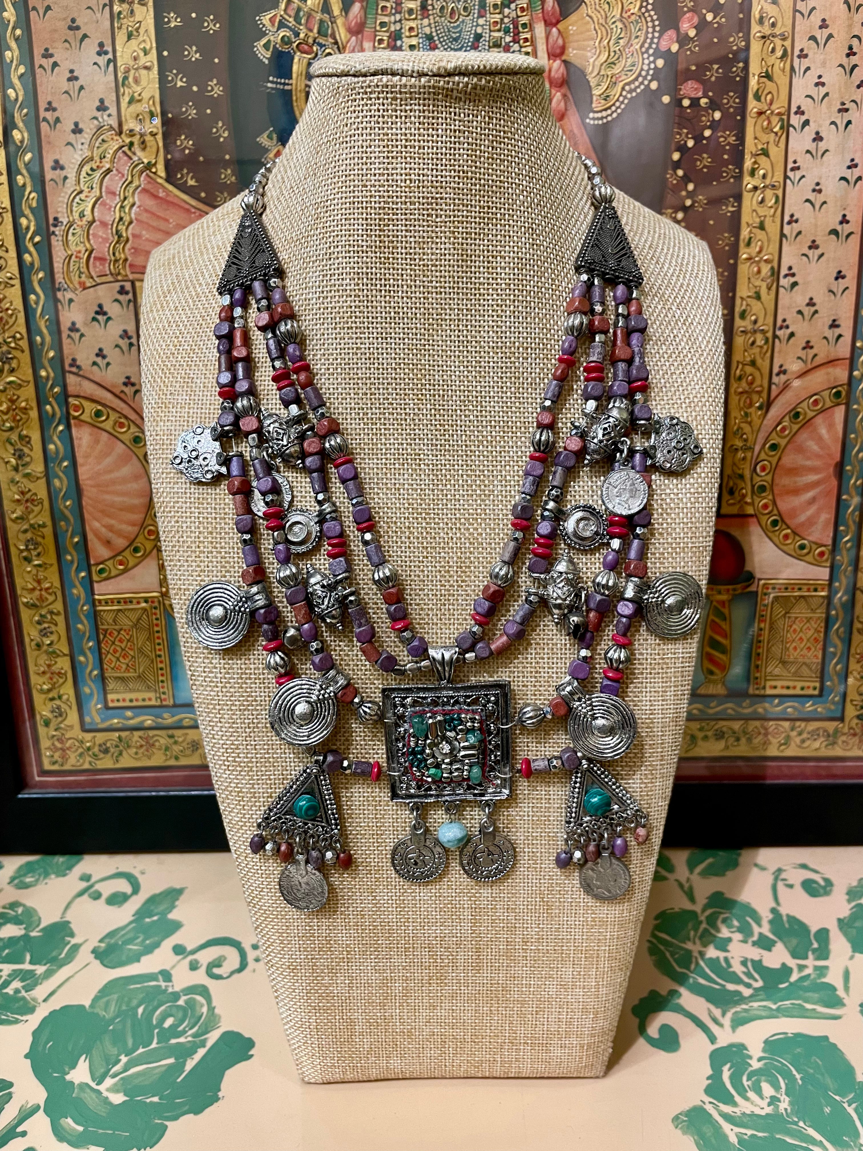 TRIBAL OXIDISED SILVER SEMI PRECIOUS STONES DESIGNER NECKLACE