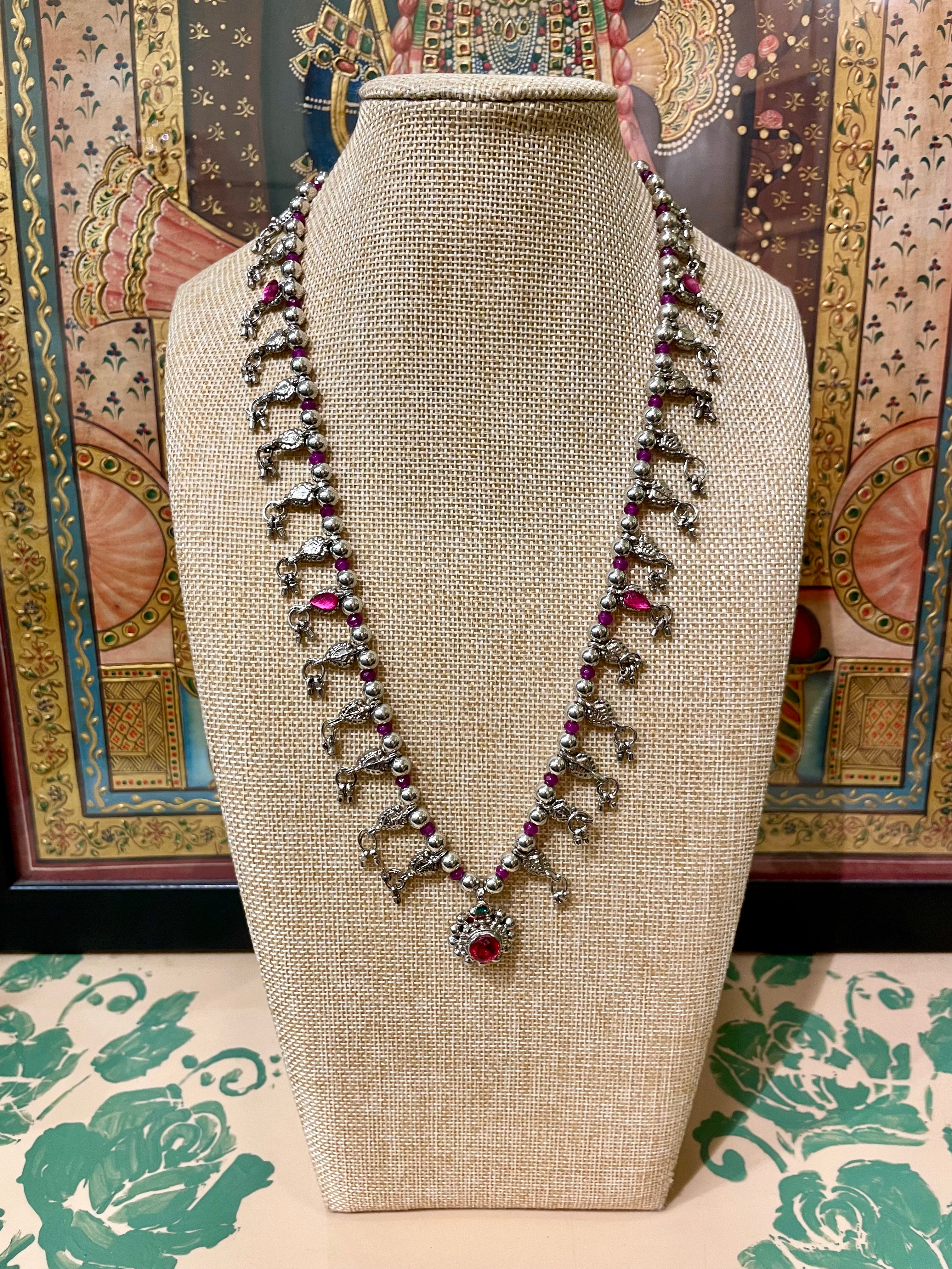 TRADITIONAL KOLHAPURI SAAJ DESIGN SILVER TONED NECKLACE