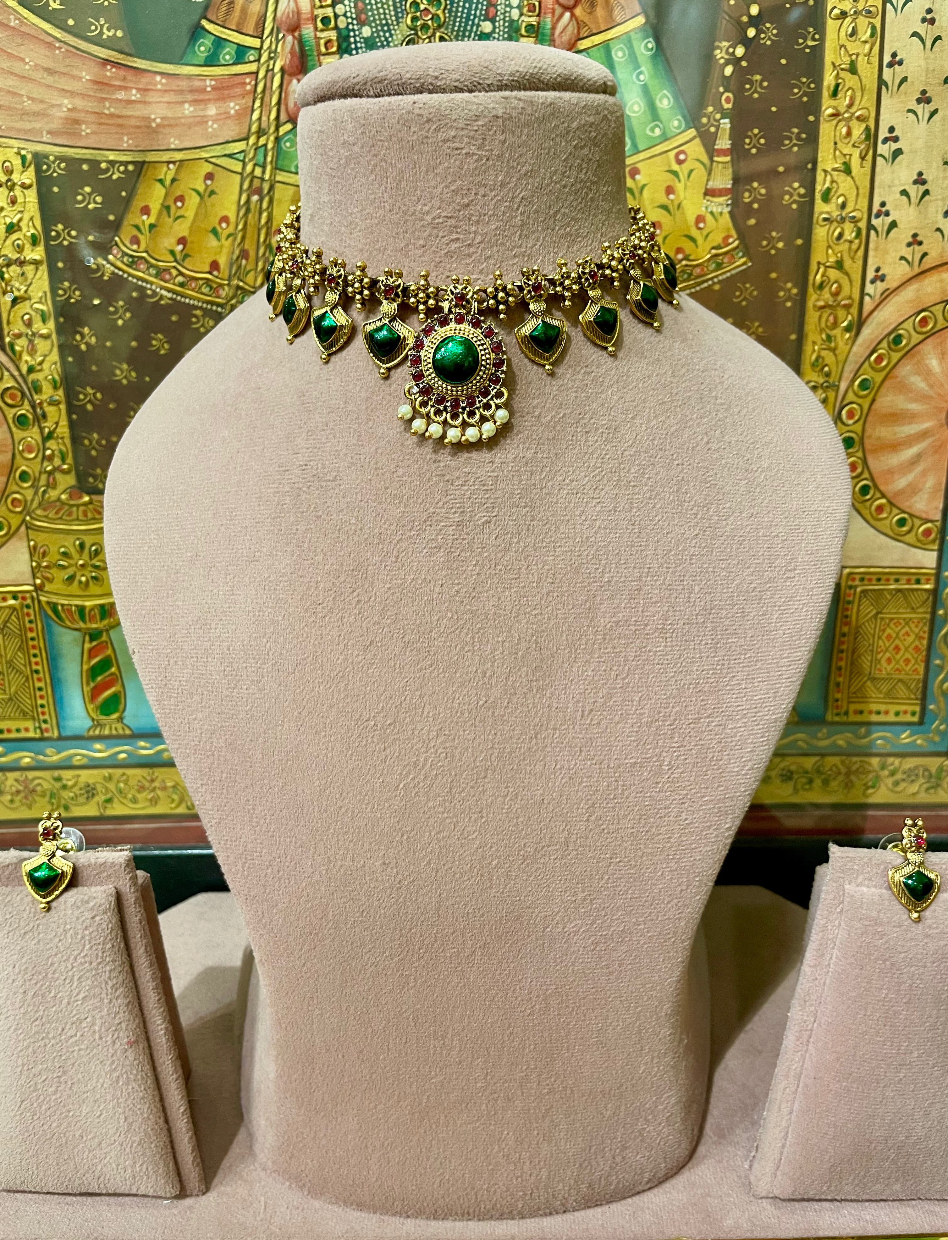 GREEN TRADITIONAL SOUTH INDIAN NECKLACE SET