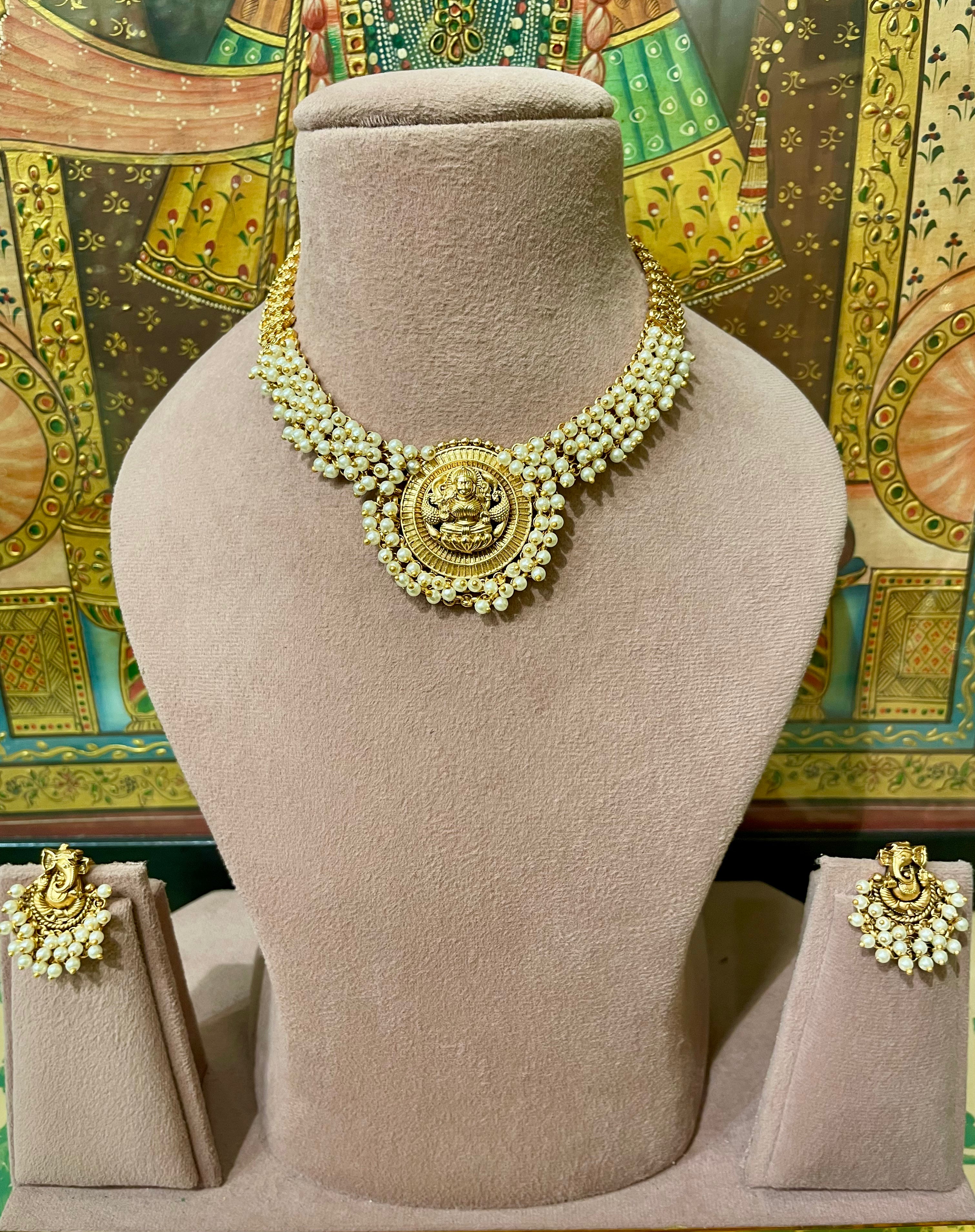 TRADITIONAL SOUTH INDIAN MAA LAXMI NECKLACE SET (WHITE)