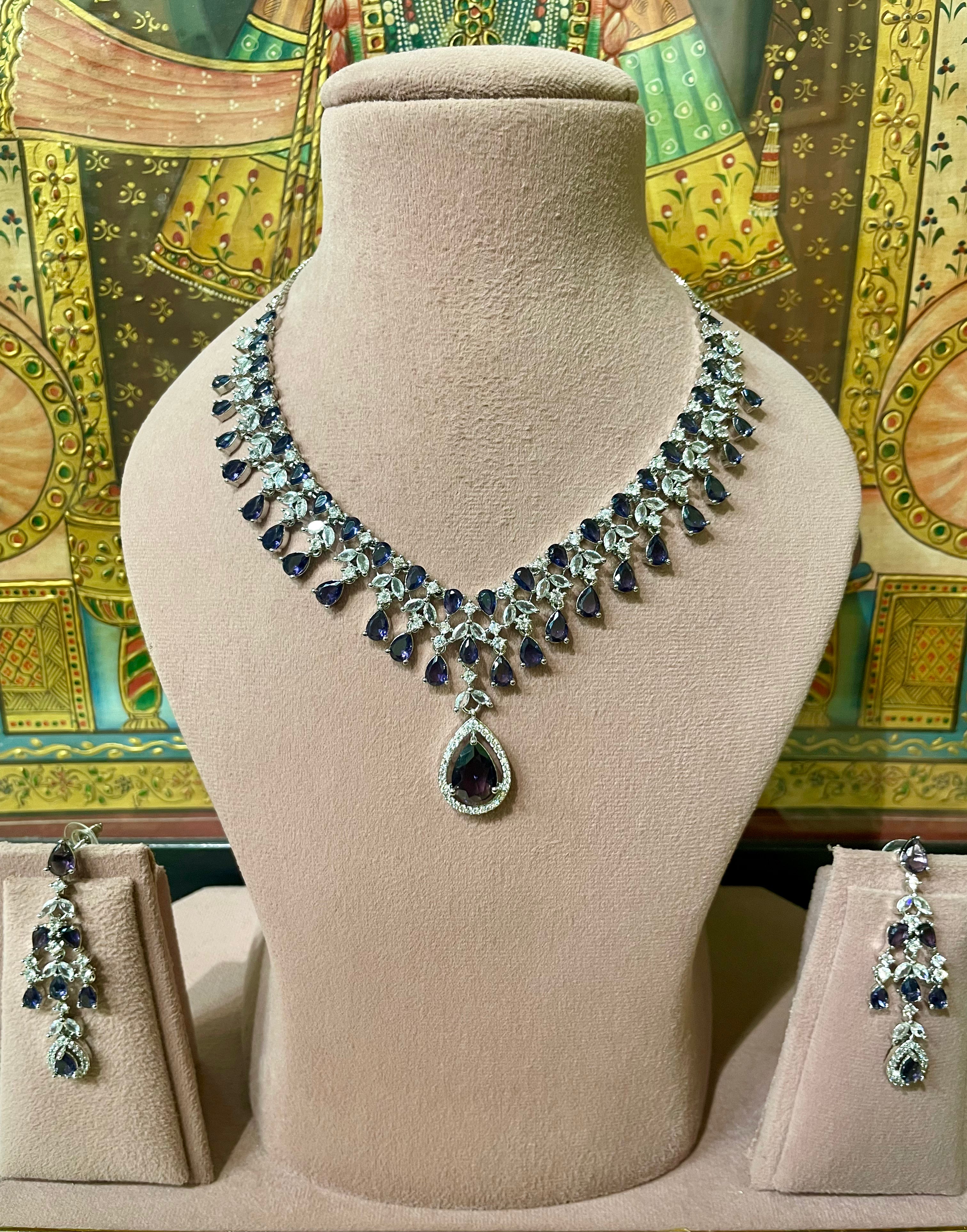 ANETHYST PURPLE PENDANT DESIGNER AMERICAN DIAMOND (AD) NECKLACE SET