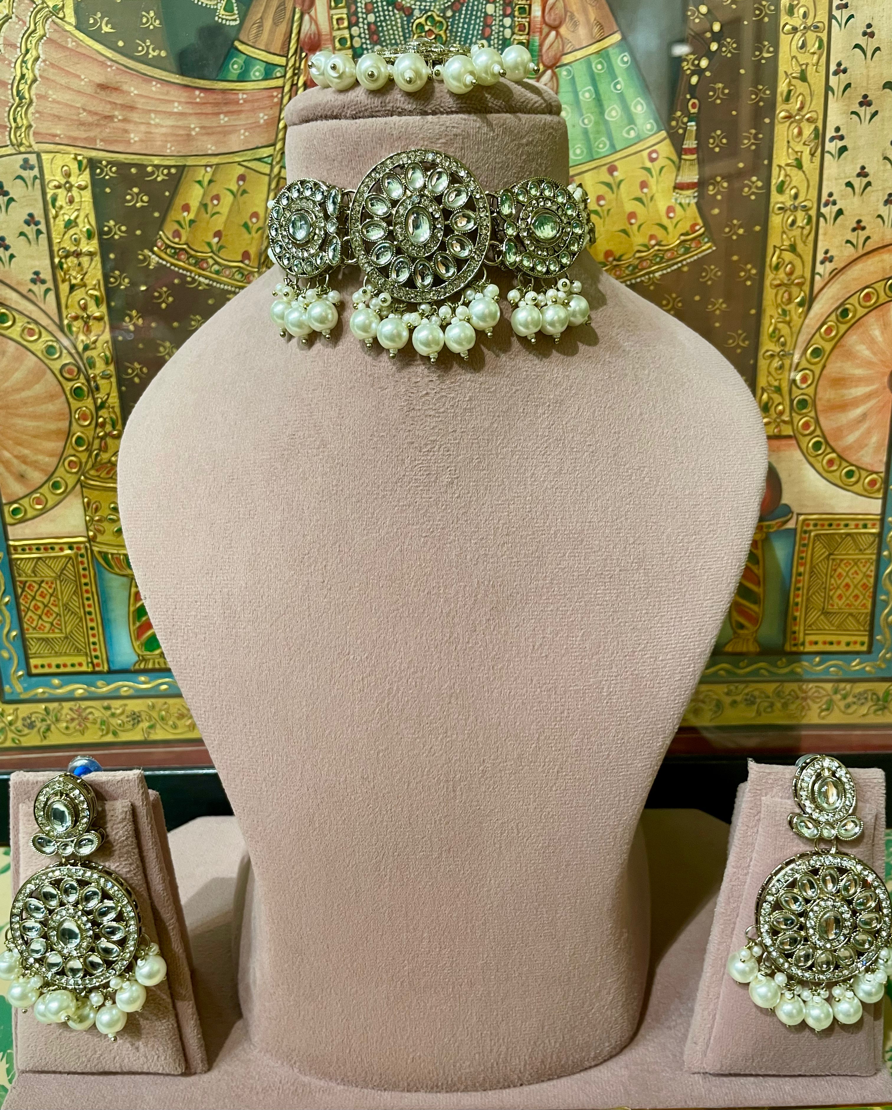 IVORY WHITE KUNDAN CHOKER NECKLACE SET
