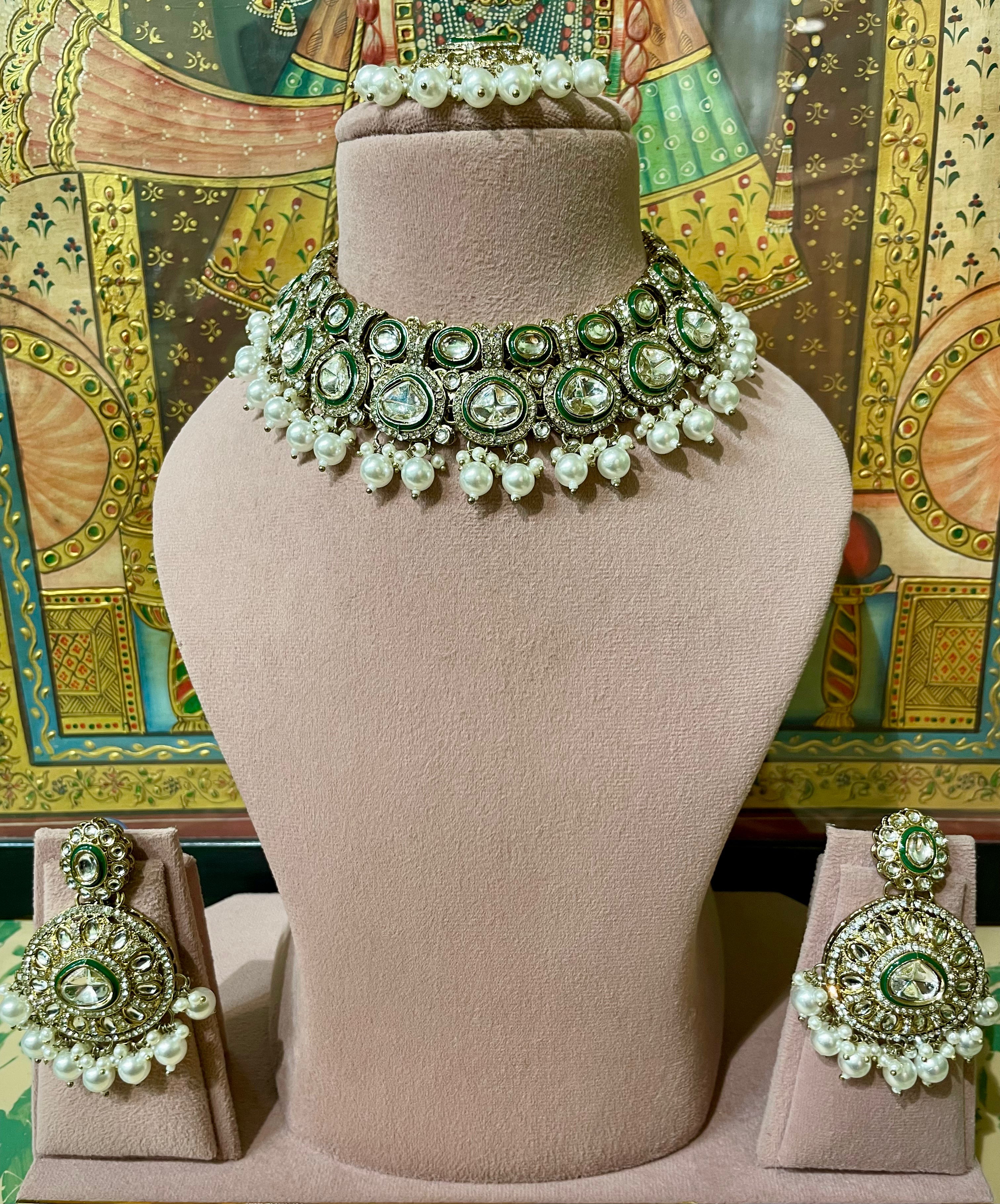 IVORY WHITE KUNDAN MOISSANITE BRIDAL NECKLACE SET