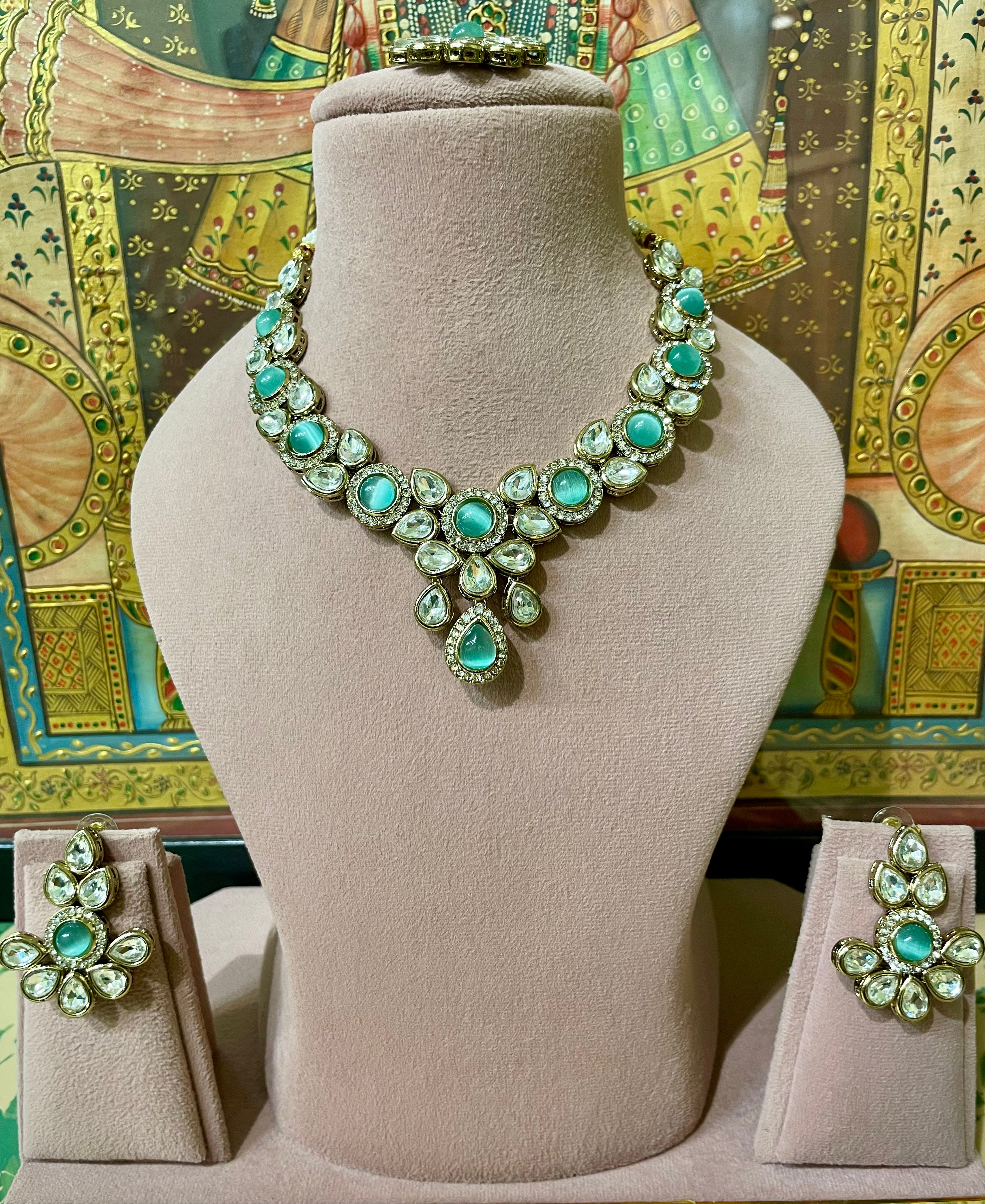 MINT GREEN KUNDAN MOISSANITE MONALISA NECKLACE SET