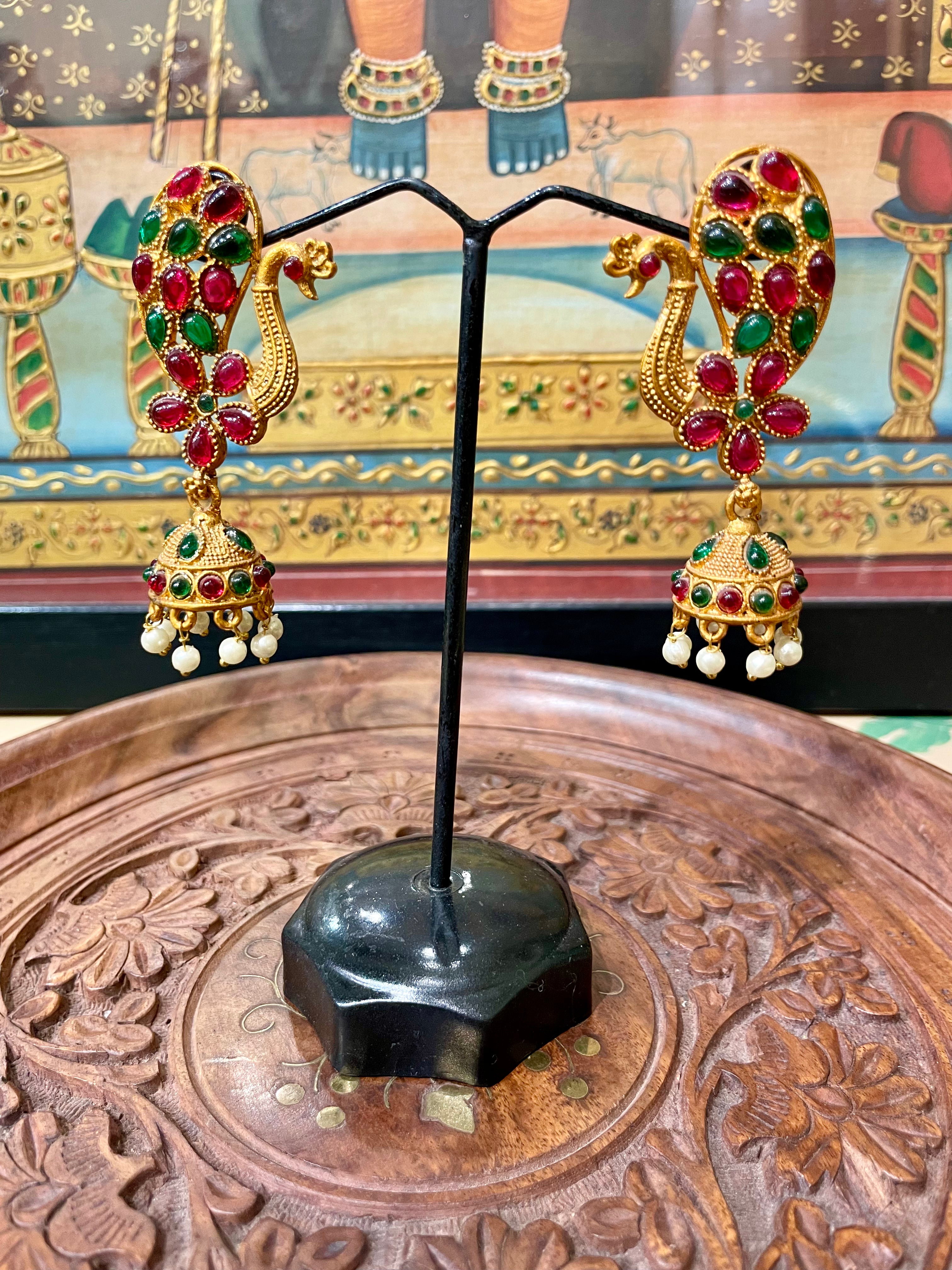 SOUTH INDIAN GOLD TONED PEACOCK JHUMKI EARRINGS